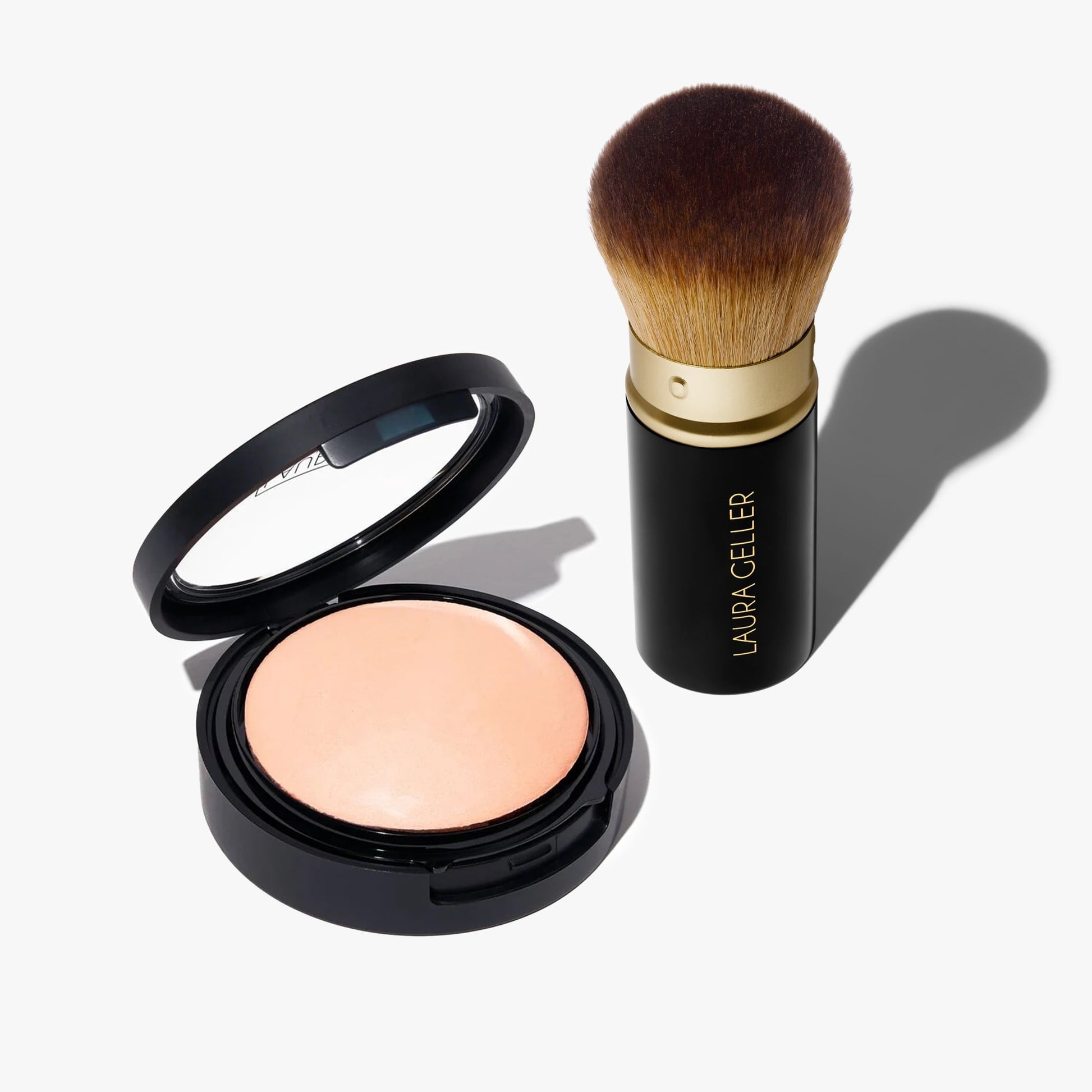 Everything you need to create a full-coverage base! This essential two-piece kit includes Laura’s iconic Double Take Baked Full Coverage Foundation, delivering powerful yet weightless full coverage and a velvety matte finish. Blend using the included Retractable Airbrush Kabuki Brush for an effortless look â€?you can also use the included sponge wet or dry for the ultimate in coverage!